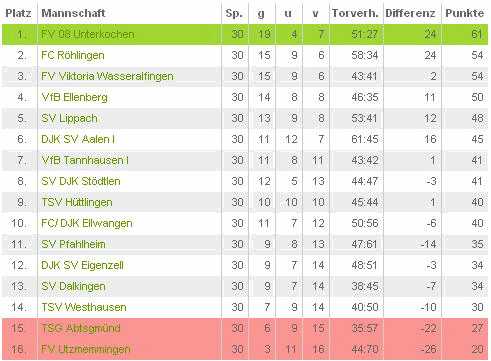 Überraschend erreichte die 1. Mannschaft am letzten Spieltag den 2. Tabellenplatz und somit die Relegationsspiele zum Aufstieg in die Bezirksliga. Trotz zahlreicher Chancen und überlegen geführtem Spiel unterlag man gleich im ersten Spiel gegen den FC Mögglingen mit 1:2.