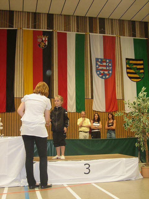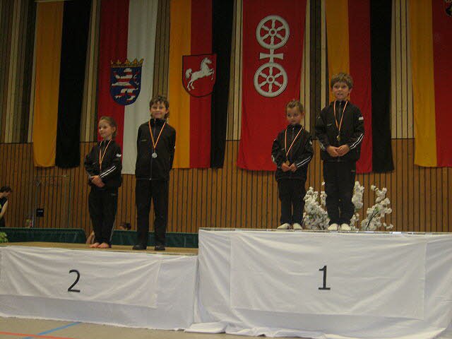 Die erste Goldmedaille ging an Meike Wolf (8) vom FCR, sie überzeugte mit ihrer sauber vorgetragenen Podest-Übung. Zum ersten Mal bei einem Wettkampf dabei, startete Pauline Heinisch (6) auch in der Disziplin Podest sie zeigte eine fehlerfreie und witzige Übung und erreichte somit die Bronzemedaille. Ebenfall auf dem Podest turnte Lydia Frei (7), sie hatte kleine Unsicherheiten in ihrer Kür und belegte Platz 8. Auch bei den Mix-Paaren gab es nur Strahlegesichter. Mit ihrer sehr ausdrucksstarken Übung überzeugten Tobias Rupp (8) und Sophia Eiberger (5) nicht nur die Kampfrichter sonder auch das Publikum, das die Kür mit viel Beifall unterstrich. Auch die Geschwister Johannes (8) und Kathrin Gerold (6) zeigten eine schöne und fehlerfreie Kür und erreichten mit nur 0,4 Punkten hinter ihren Vereinskameradinnen/en (Tobse und Miss Sophie) die Silbermedaille.