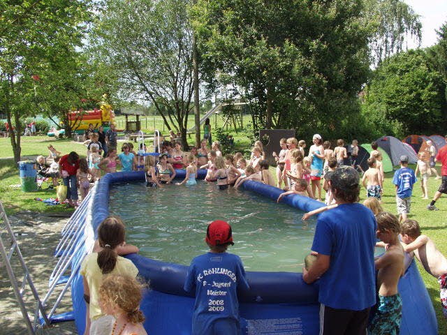Der vereinseigene Swimmingpool bot für die Kinder eine Abkühlung nach Sport und Spiel. An einem Abend ging es mit bunt leuchtenden Ringen und Taschenlampen zur Nachtwanderung in den Killinger Wald auf. Zudem stand eine Lager-Olympiade auf dem Programm, bei sich der Teams von sechs Kindern bei verschiedenen Wettspiele maßen.