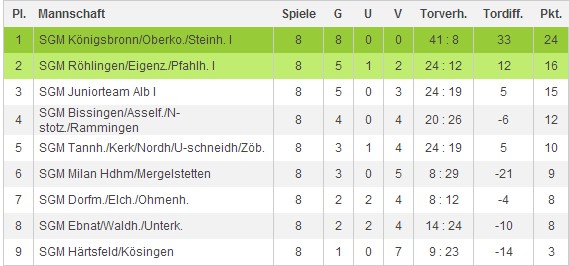 Abschlußtabelle D1-Junioren Kreisstaffel