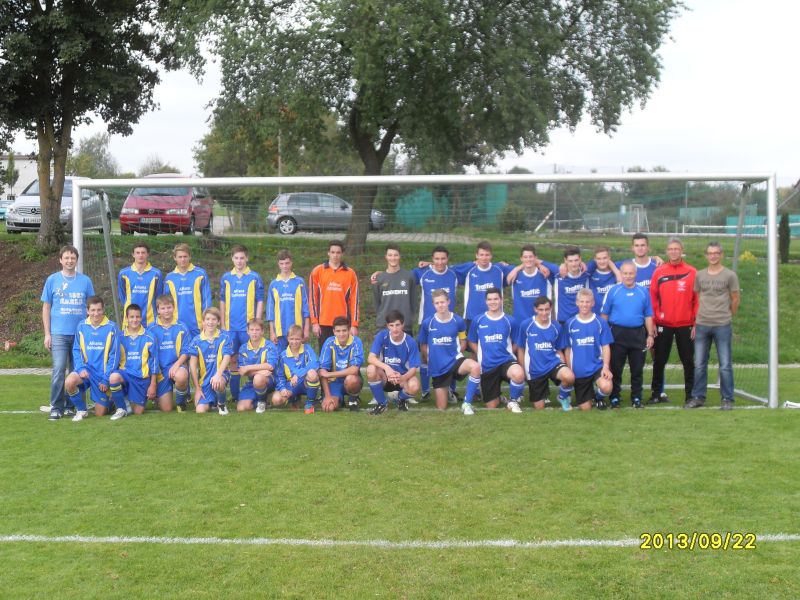 Hintere Reihe v. links: Betreuer J. Häfele, Trainer G. Seidel, T. Häfele, L. Wünsch, L. Mack, R. Junker, M. Szabo, P. Knecht, Torspielertrainer M. Seibald, Trainer M. Szabo