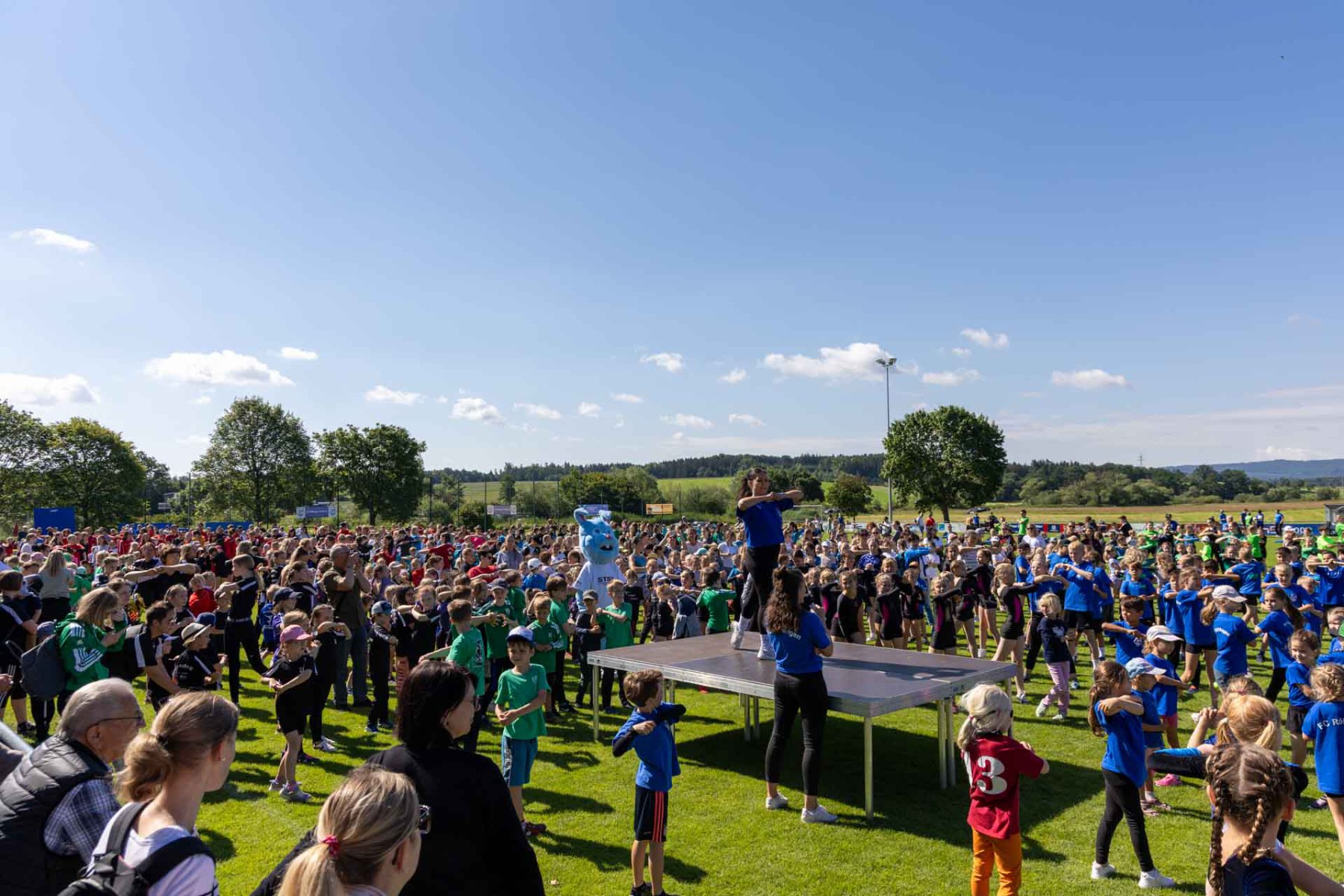 Mit einem fetzigen Flashmob brachten Leonie Scheibli und STB Maskottchen Turni alle Anwesenden in Bewegung und stimmten die Teilnehmenden auf einen sportlichen Tag ein.