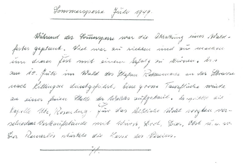 Mit einem zum ersten Mal abgehaltenen Waldfest im Ährenhölzle, an der Strasse nach Killingen, kann der FC sowohl die finanzielle Situation, als auch die noch nicht überall in der Bevölkerung vorhandene Akzeptanz verbessern.