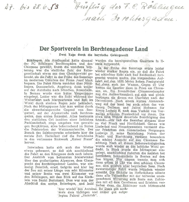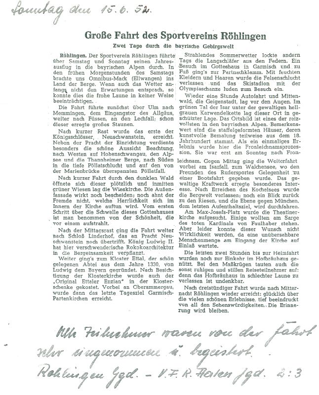 Den jungen Röhlinger Männern, die in einer mehr als schwierigen Zeit den Mut gefunden haben, diesen Sport zu beginnen und Pionierarbeit zu leisten, sei an dieser Stelle herzlich gedankt. Wer weiß, wo wir heute stehen würden, hätten sie damals anders gehandelt.