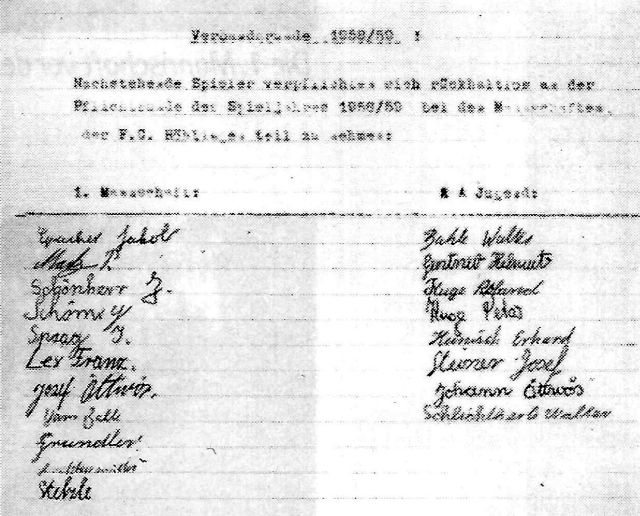 Georg Rupp, W. Metzger, Erwin Spaag, Hermann Uhrle, Max Rose, Alois Schlosser, Georg Baier, Kurt Schönherr, Willi Abele, Paul Schmid, Karl Uhrle, Josef Betzler, Josef Rieger, Karl Schlichtherle, Rudolf Reeb, Karl Kirsch, Rudi Wenhuda, Heinrich Ley, Hermann Reeb, Karl-Heinz Köhler, O. Geiger, Hans Kuge, Albert Durm, Erwin Uhrle, Alois Ladenburger, A. Ehleiter, Josef Mack, Josef Schnell