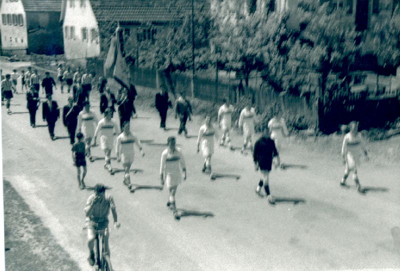Obwohl der Verein nur kurze Zeit so bestehen konnte, gab es dennoch auch gleich einen sportlichen Höhepunkt. Zu einem Entscheidungsspiel um die Kreismeisterschaft musste man in Fachsenfeld antreten. Obwohl das Spiel letztendlich verloren ging, war es doch ein grosses Erlebnis für alle Dabeigewesenen. Schon die Fahrt mit dem Lastwagen war etwas Besonderes, jeder Zuschauer, der mitwollte, musste. 50 Pfennig zahlen.