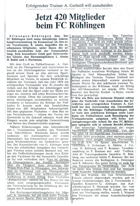 Die seit 1969 bestehende Mädchengymnastikgruppe tritt zum 1. Januar dem FC bei. Unter Federführung von Franz Mündl hält im Frühjahr mit Unterstützung der Ringerhochburg TSV Dewangen das Ringen in Röhlingen Einzug. Eine Ringerabteilung, mit sofortigem großen Zulauf, wird gegründet.