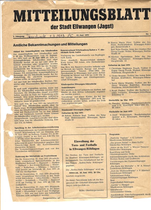 Für den Bereich der Stadt Ellwangen wird die Gründung des Stadtverbandes sporttreibender Vereine beschlossen.