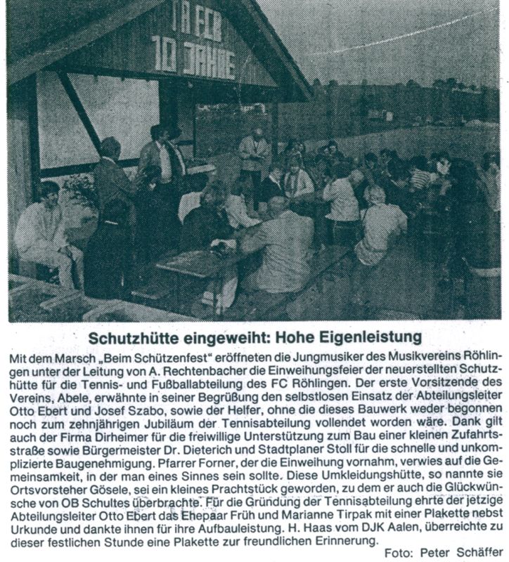 Das jüngste „Kind “ des FC, die Tennisabteilung, feiert 10jähriges Jubiläum. Im Rahmen der Feierlichkeiten wird Ende Mai die Vereinshütte, vereinsintern auch Szabo-Ebert-Hütte genannt, eingeweiht. Die erste “Tour de Röhlingen” wird ein voller Erfolg. Dagegen scheint sich das seit vielen Jahren durchgeführte Scheunenfest mit der Zeit tot zu laufen.