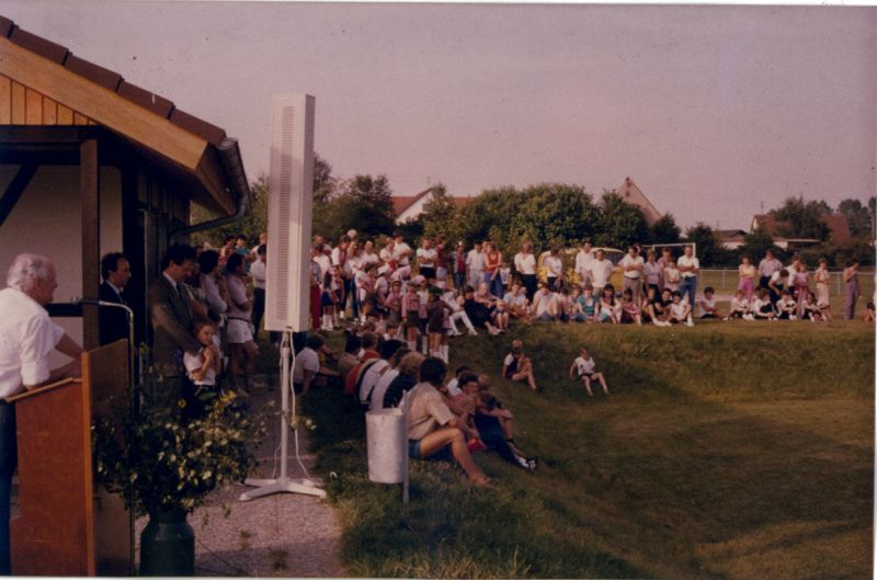 Mit einem großen Festprogramm wird der vereinseigene Sportplatz Ende Juli eingeweiht. Kultusminister Mayer-Vorfelder sagt seinen zugesicherten Besuch des politischen Frühschoppens kurzfristig ab. An seiner Stelle spricht der Landesvorsitzende der Jungen Union Oettinger, der spätere Ministerpräsidenten von Baden-Württemberg.