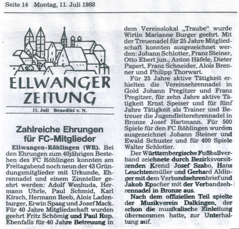 Das 40jährige Bestehen des Vereins wird mit einem großen 3-Tagesfest vom 8. bis 10. Juli gefeiert. Festakt, bunter Abend und ein Fussballturnier bilden den Rahmen dieser Feierlichkeiten.