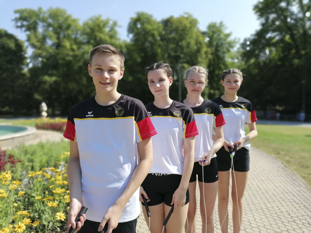 Vom 14. bis 20. Juli 2024 fand in Eger/Ungarn die Europameisterschaft im Rope Skipping statt, bei der circa 200 deutsche Athlet*innen teilnahmen. Darunter auch Emily Gloning, Marcel Rathgeb, Leni Rechtenbacher und Anna Springer vom FC Röhlingen, die sich bei den Deutschen Meisterschaften für die Junioren-EM qualifiziert hatten.